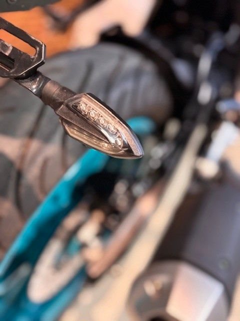 Kurzer Kennzeichenhalter, originales Tankpad, sowie hochwertige LED-Blinker wurden beim Händler nachgerüstet.